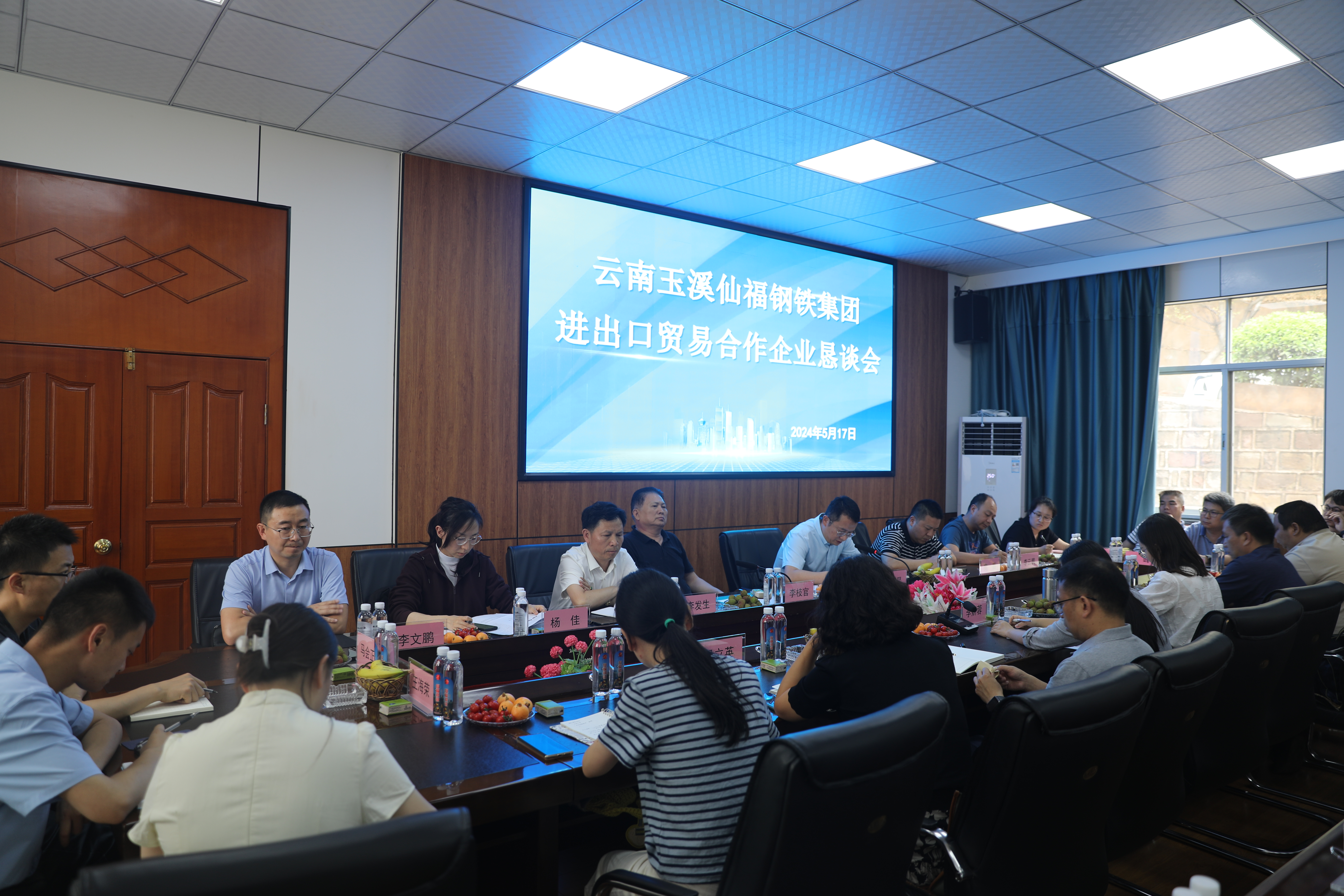 近日,云南玉溪仙福鋼鐵集團進出口貿(mào)易合作企業(yè)懇談會在公司三樓會議室召開。會議由玉溪市商務(wù)局副局長周煜旻主持,新平縣人民政府副縣長李文鵬,仙福鋼鐵集團總經(jīng)理李枝官,仙福鋼鐵集團副總經(jīng)理李發(fā)生等市縣相關(guān)領(lǐng)導(dǎo),各合作伙伴代表共60多人參會。