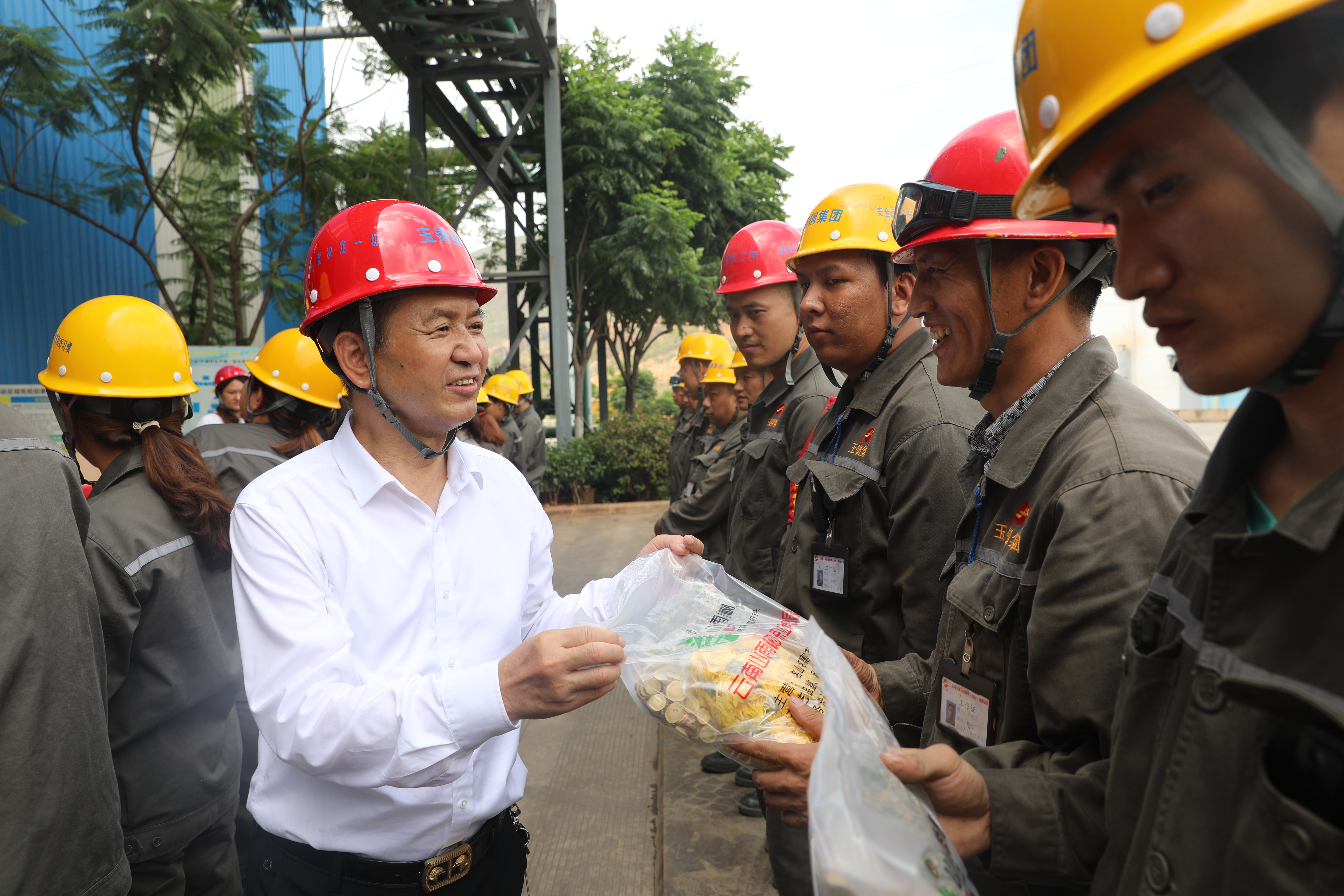 活動中,王金生、陳彩惠、林圣干深入煉鐵廠、煉鋼廠、軋鋼廠慰問。每到一處,親手將防暑降溫用品送到一線職工手中,叮囑他們要注意防暑降溫,注意安全。職工們拿著發(fā)放的慰問品,臉上洋溢著滿滿的幸福。
